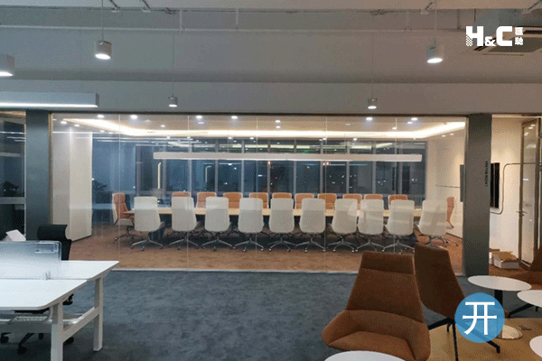 地點(diǎn):廣州市天河區(qū)海安路 應(yīng)用:調(diào)光玻璃辦公室隔斷